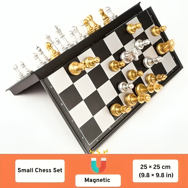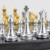 Discover the Elegant Magnetic Chess Set featuring a classic black & white board and stunning gold & silver pieces. Perfect for home, travel, or as a thoughtful gift.
